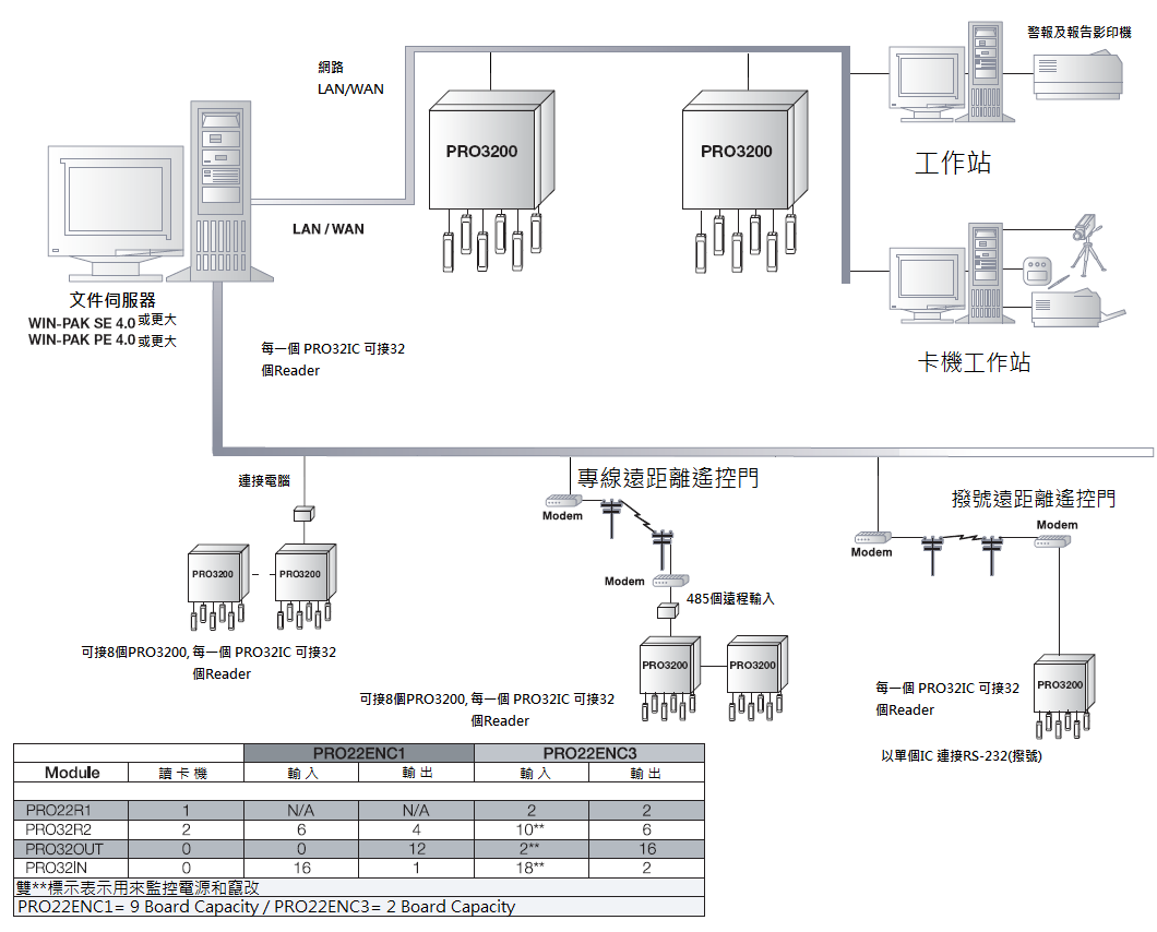 8管理單位- 普通警報輸入使用程式迴路(當使用PRO22ENC1, PRO22ENC2 和 PRO22ENC5只有有6管理單位可正常輸入) |